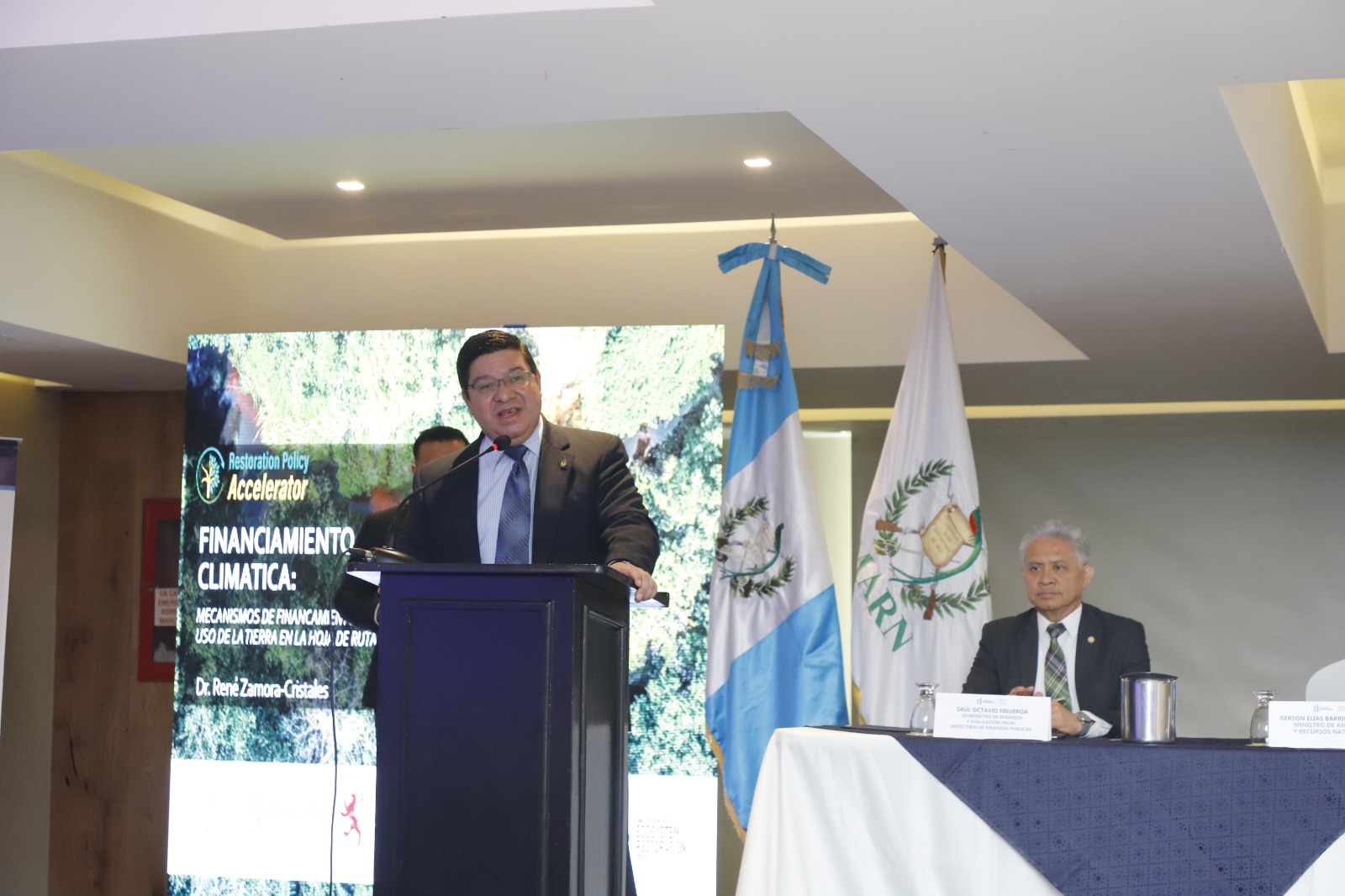 El viceministro de Ingresos y Evaluación Fiscal, Saúl Figueroa, expuso que desde el Ministerio de Finanzas están en la disposición de apoyar a las instituciones en los procesos de obtener financiamiento. “Está en su responsabilidad cimentar lo que ahora se está empezando a realizar, tener claro los programas que pueden dar perdurabilidad y reducir los riesgos del cambio climático”, añadió.