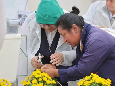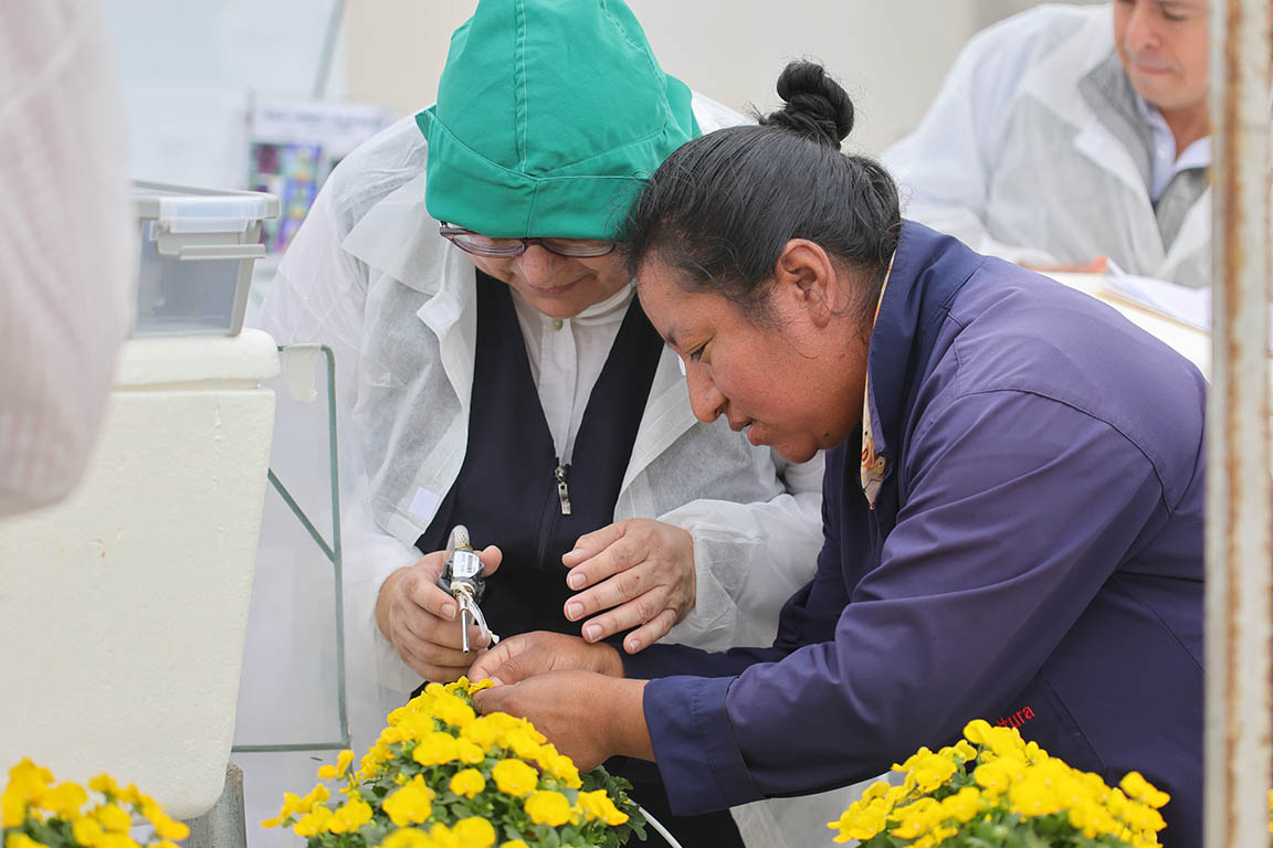 La viceministra también presenció el proceso de obtención, manejo y depósito del polen, una labor delicada que garantiza la pureza genética de las plantas ornamentales. Posteriormente, conoció el área donde se almacenan y preparan las semillas para su exportación, parte de una cadena integrada que permite a la empresa producir entre 1200 y 1500 millones de semillas al año.