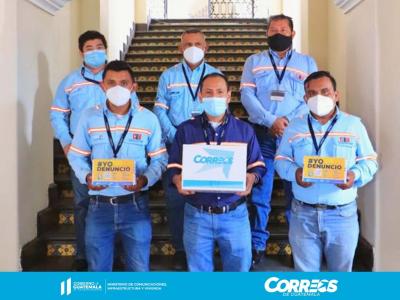 Colaboradores de Correos de Guatemala reciben Kits para continuar la implementación de la campaña #YoDenuncio.