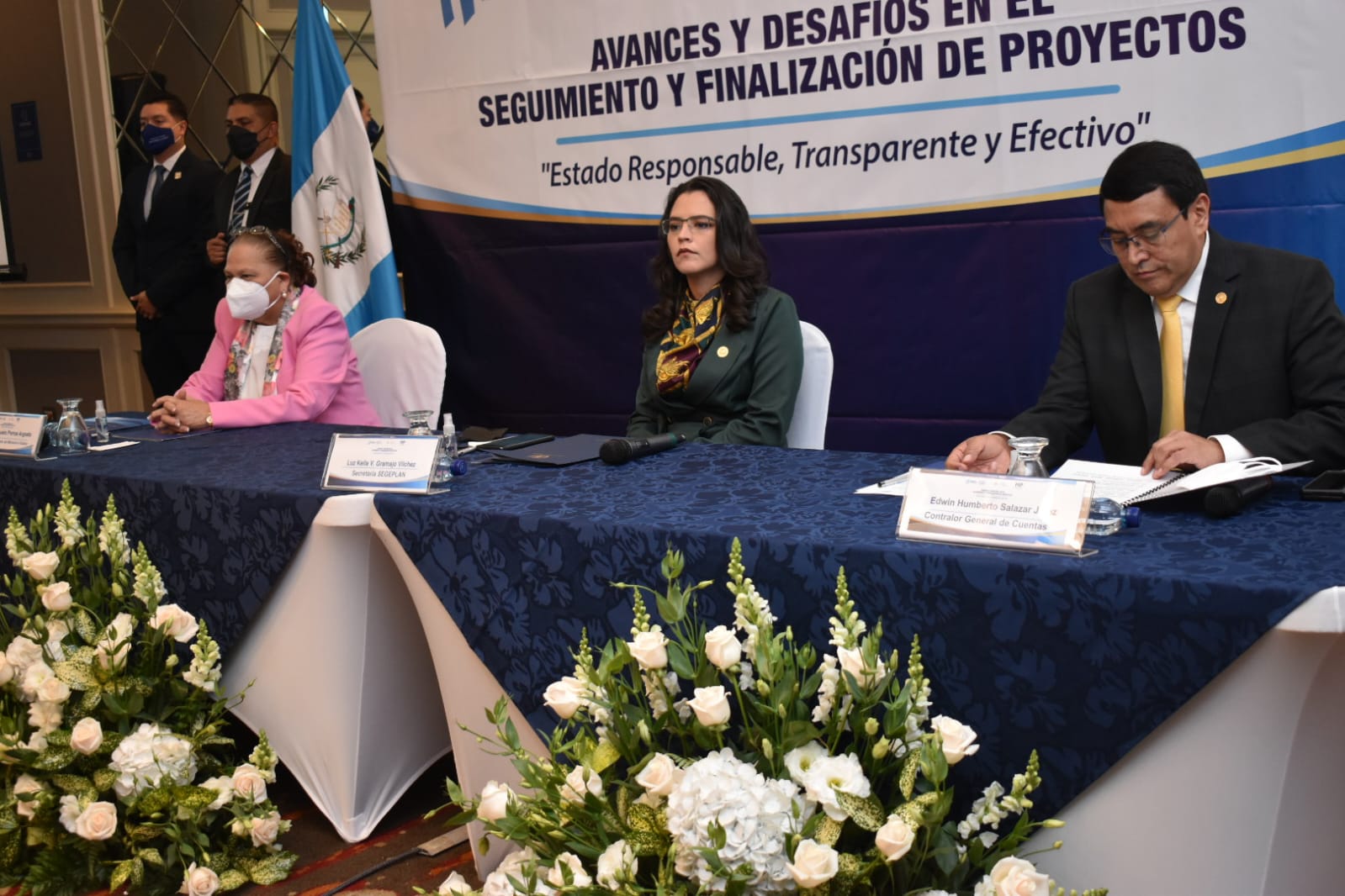 La Secretaria General de SEGEPLAN, Keila Gramajo Vilchez; la Fiscal General de la República y Jefe del MP, María Consuelo Porras Argueta y el Contralor General de Cuentas, Edwin Humberto Salazar Jerez, reiteraron su compromiso de acompañar a los funcionarios municipales y autoridades de los CODEDE, en sus respectivas competencias, para que el proceso de finalización de las obras se haga de manera correcta.