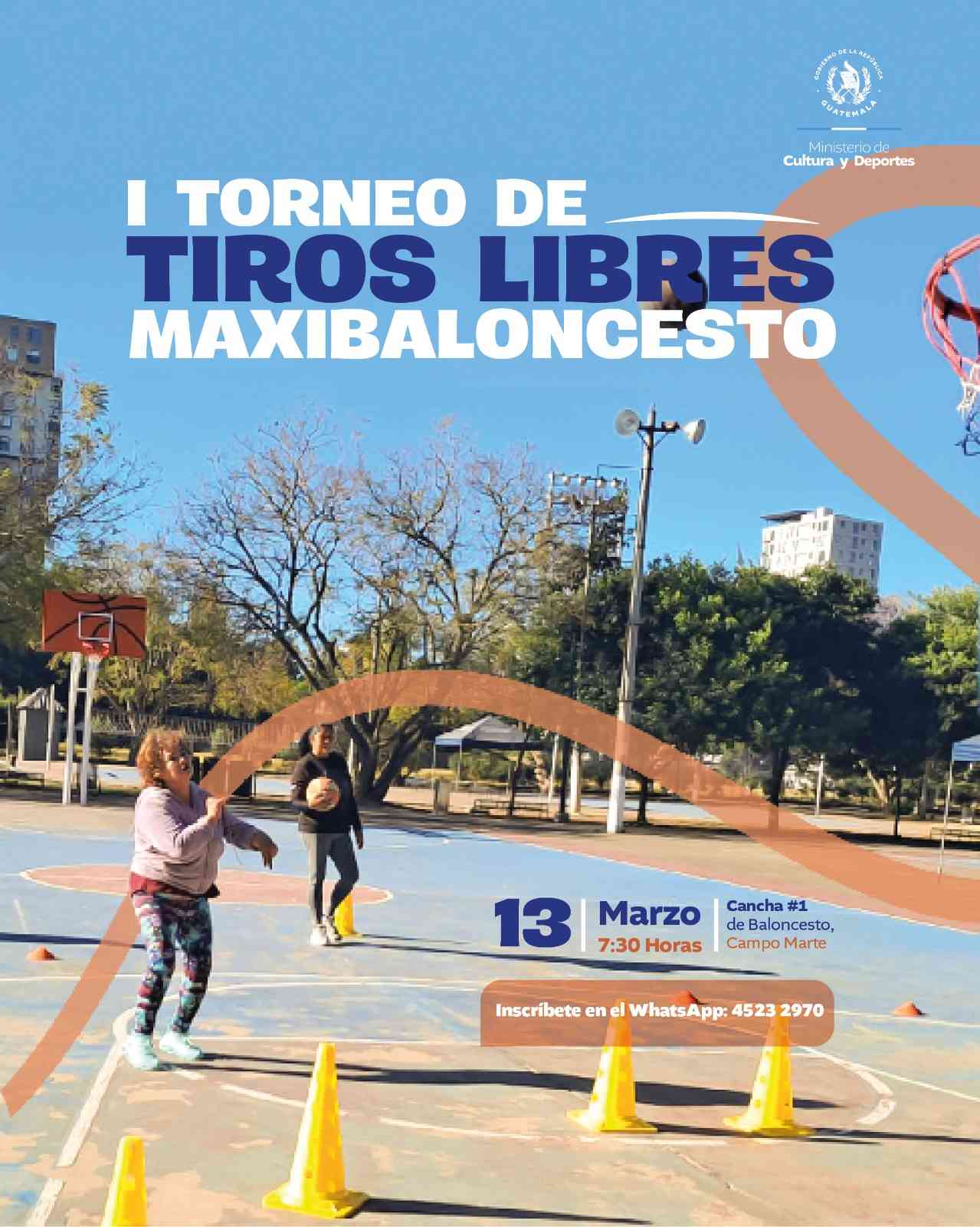 Te invitamos a participar en el I Torneo de Tiros Libres de Maxibaloncesto, que se realizará en el Centro Deportivo Campo Marte. Disfruta de una mañana llena de deporte, sana competencia y convivencia.