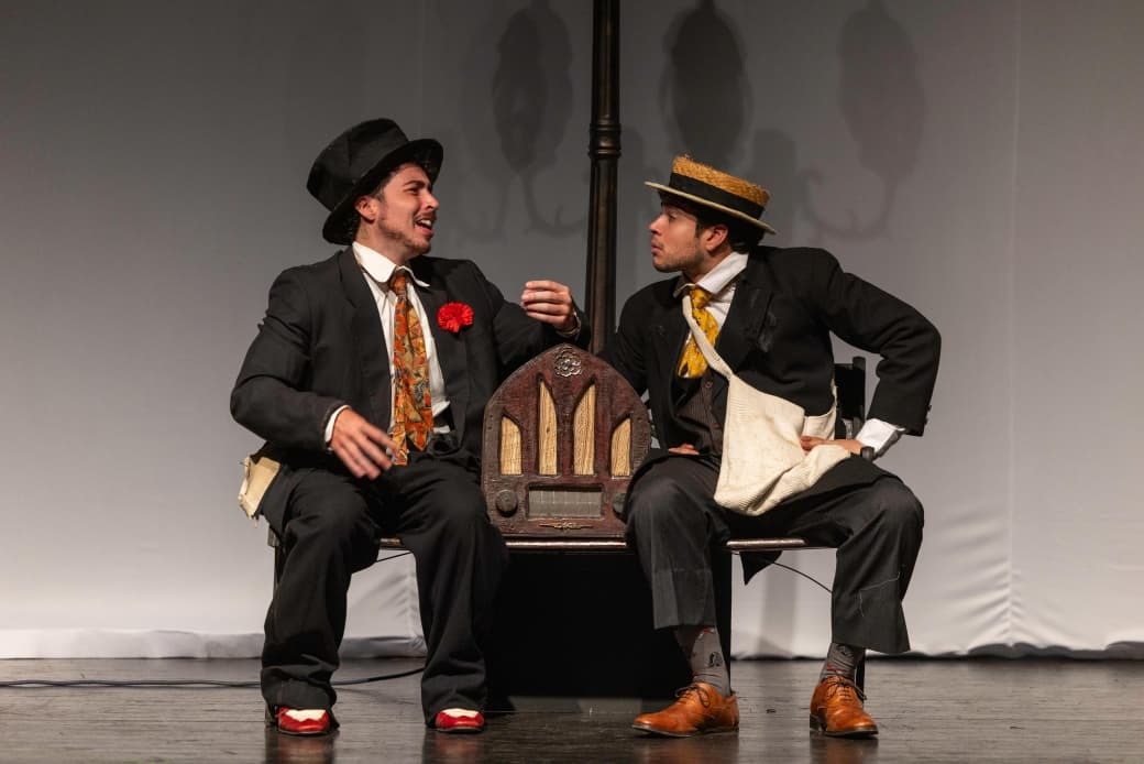 La puesta en escena también hace referencia a Carlos Gardel, uno de los máximos exponentes del tango argentino. En tono anecdótico, uno de los personajes asegura ser hijo del célebre cantante tras un supuesto encuentro de su madre con el artista en Sudamérica.