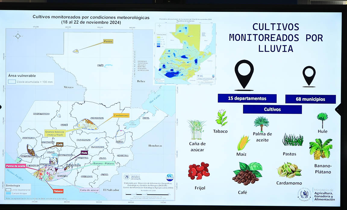 López agregó que actualmente se mantiene la alerta anaranjada a nivel institucional y por ello, se ha mantenido el monitoreo constante en el sector agropecuario y se recopilan los informes locales, para preparar y entregar esta semana a la Coordinadora Nacional para la Reducción de Desastres (CONRED), el informe de daños en el sector.