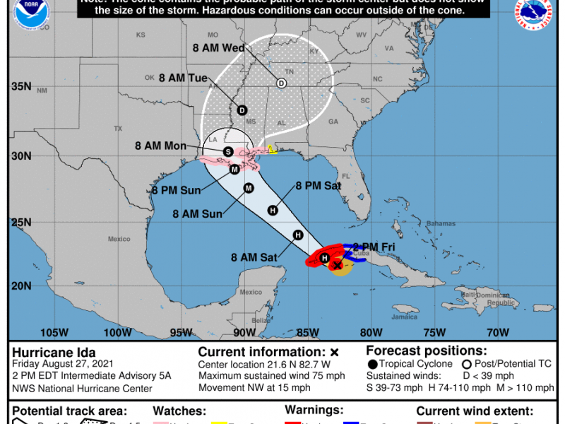 La Tormenta Tropical Ida se ha fortalecido a Huracán y actualmente se encuentra cercano a Cuba, mientras se desplaza a 24 kilómetros por hora al noroeste con vientos máximos sostenidos de 120 kilómetros por hora, según informó el Instituto Nacional de Sismología, Vulcanología, Meteorología e Hidrología -INSIVUMEH- a través de su boletín meteorológico informativo #45-2021.