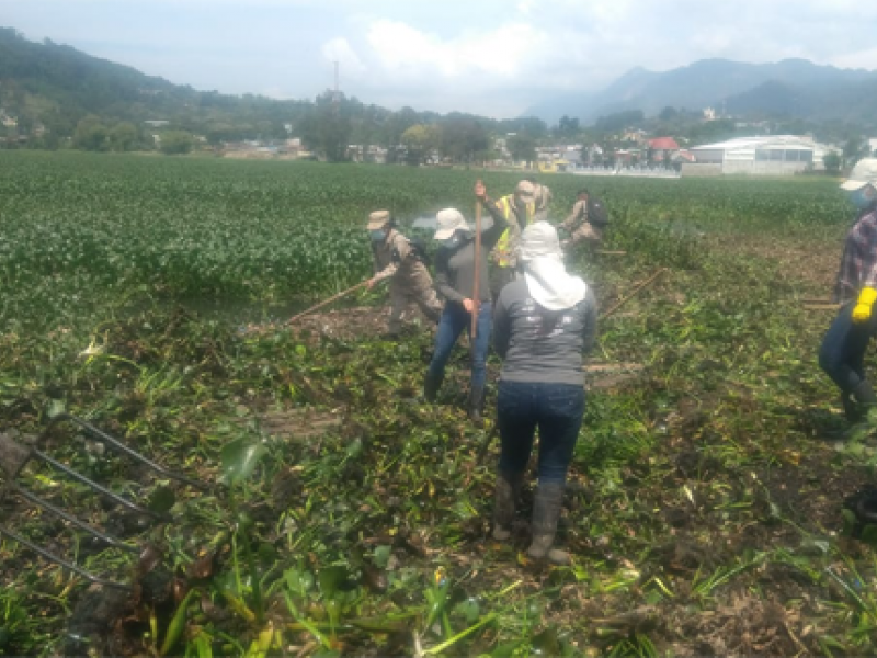 Las jornadas de limpieza comenzaron en marzo y hasta el momento se han recolectado dos mil 750 toneladas de ninfa, una planta que crece sobre el agua e impide el ingreso de luz y oxígeno a la fauna de la laguna, explicó Byron López, delegado regional del Ministerio de Ambiente.