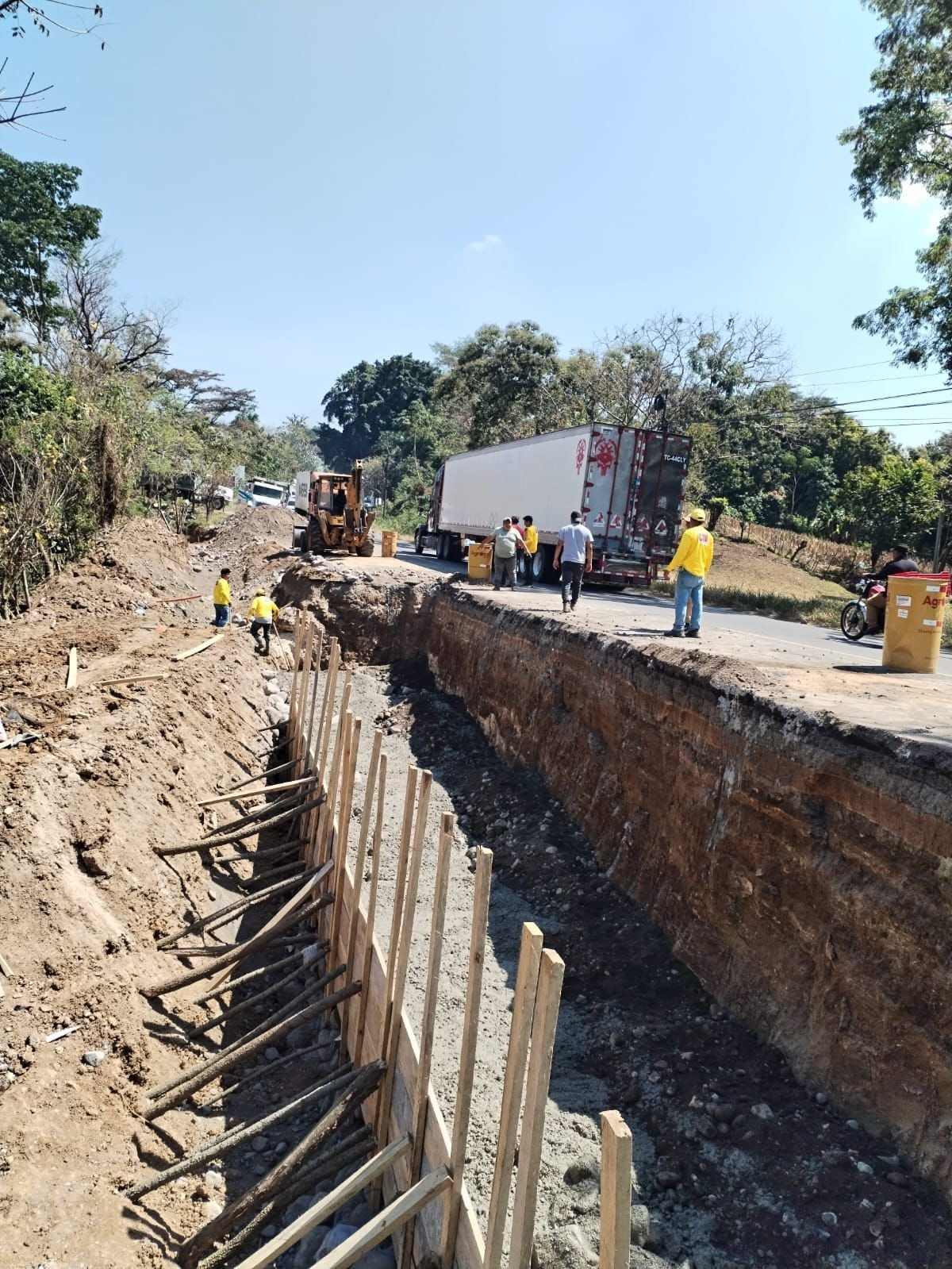 Los conductores que transiten por la CA-2 Occidente en Retalhuleu, específicamente en el kilómetro 190.3, deben tomar precauciones, ya que se están llevando a cabo trabajos de recuperación en el costado de la carretera.