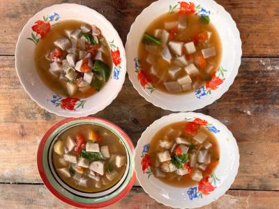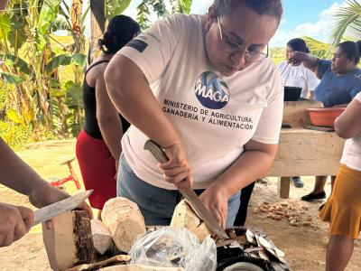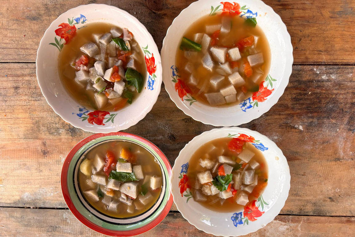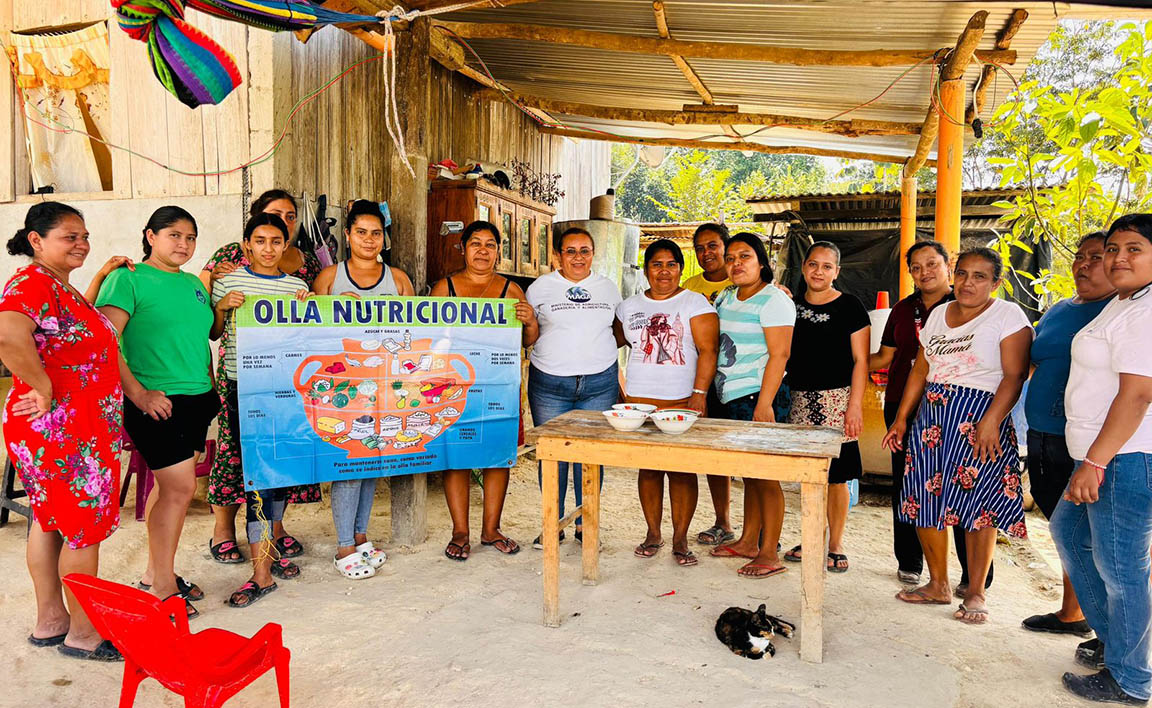 En el caserío Laguna Larga, del municipio de La Libertad, se realizó una capacitación relativa a la olla familiar, durante la cual los participantes elaboraron una receta tradicional: sopa de malanga, acompañada de algunos snacks.