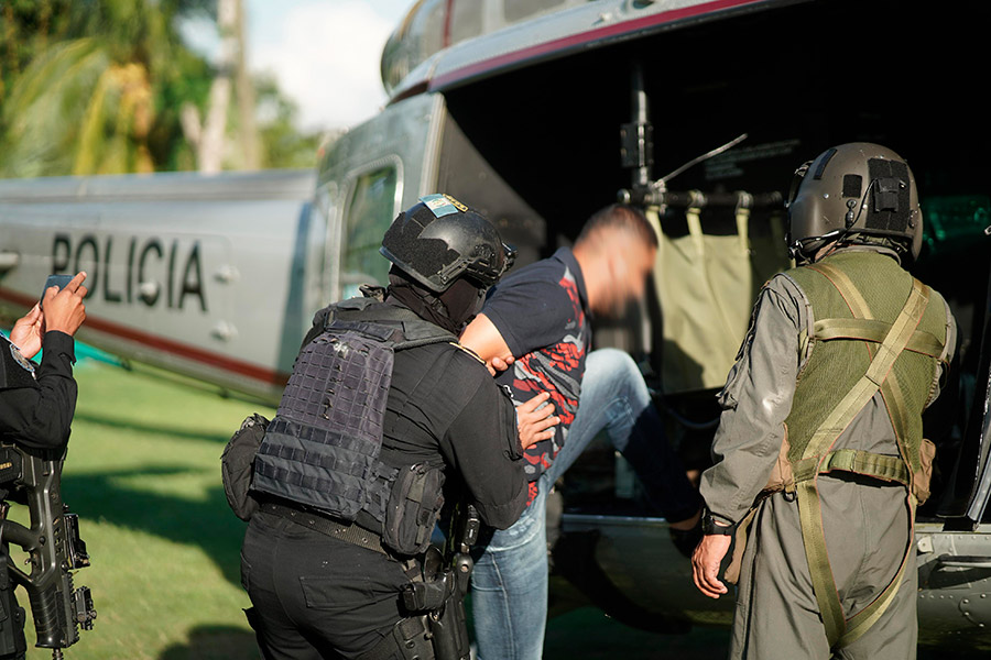 Trasladan vía área al extraditable identificado como Kelvin David Berón Ramírez, de 36 años, apodado “Catracho” o “Crunchi”, desde Los Amates, Izabal, hacia el Campo de Maniobras de la Escuela de Formación de Oficiales de Policía (ESFOP), zona 6 capitalina. Después bajo fuertes medidas de seguridad fue llevado al Centro de Detención Preventiva para Hombres Mariscal Zavala, zona 17, donde guardará prisión hasta finalizar su proceso de extradición en Guatemala.