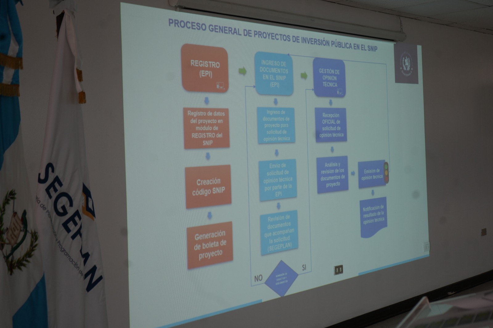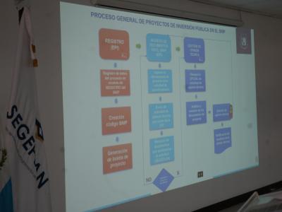 El traslado de lineamientos de planificación y del Sistema Nacional Inversión Pública (Normas SNIP) estuvo a cargo del director de Inversión para el Desarrollo, Rodolfo Campos, quien señaló que SEGEPLAN como órgano de planificación del Estado y conductor del Sistema Nacional de Planificación, formula y traslada las directrices de planificación que permiten el cumplimiento de la visión estratégica de desarrollo del país, que se articula en la Política General de Gobierno, en coordinación con el Minfin.