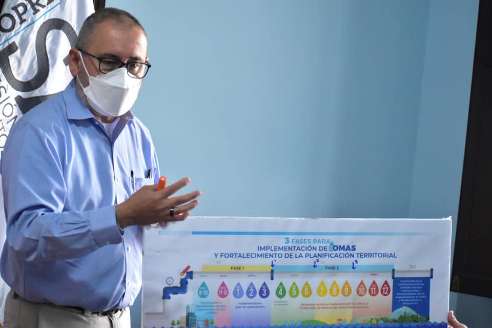 Desde procesos de fortalecimiento de capacidades a las corporaciones municipales, hasta la instalación de mesas técnicas para implementar o fortalecer las Oficinas Municipales de Agua y Saneamiento OMAS en donde las distintas entidades rectoras del tema acompañan el proceso: MARN INAP Guatemala INFOM Guatemala SCEP Secretaría de Seguridad Alimentaria y Nutricional-SESAN ANAM Guatemala Mides Guatemala SEGEPLAN Guatemala entre otros.
