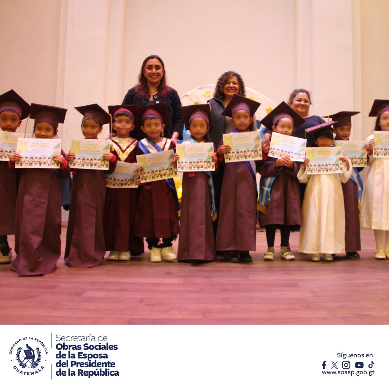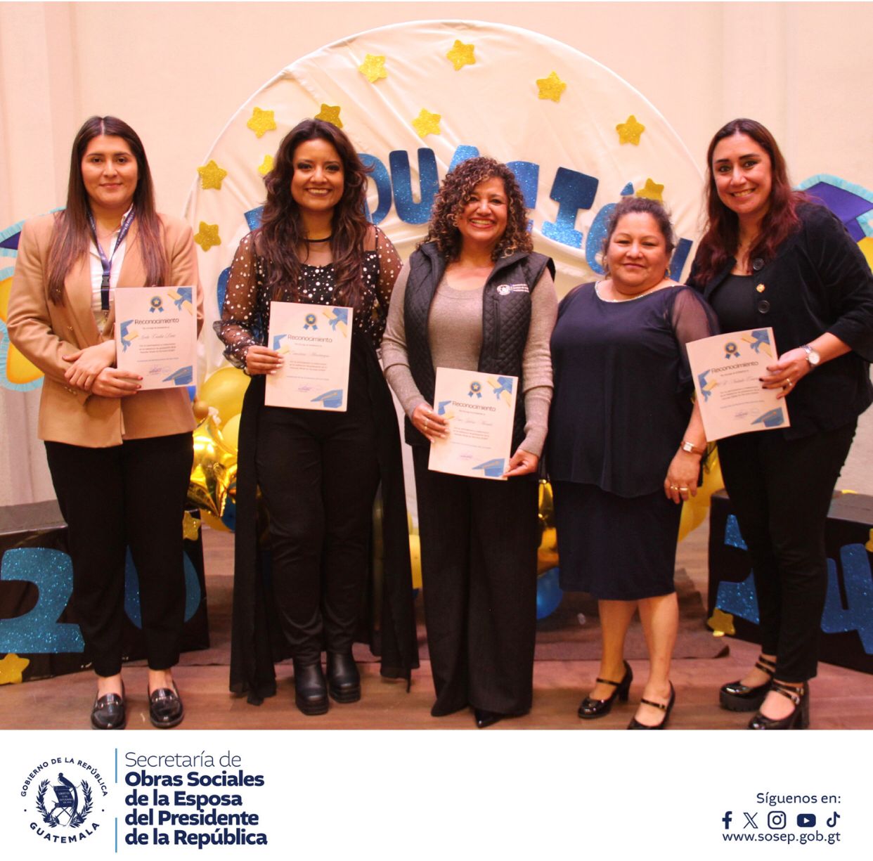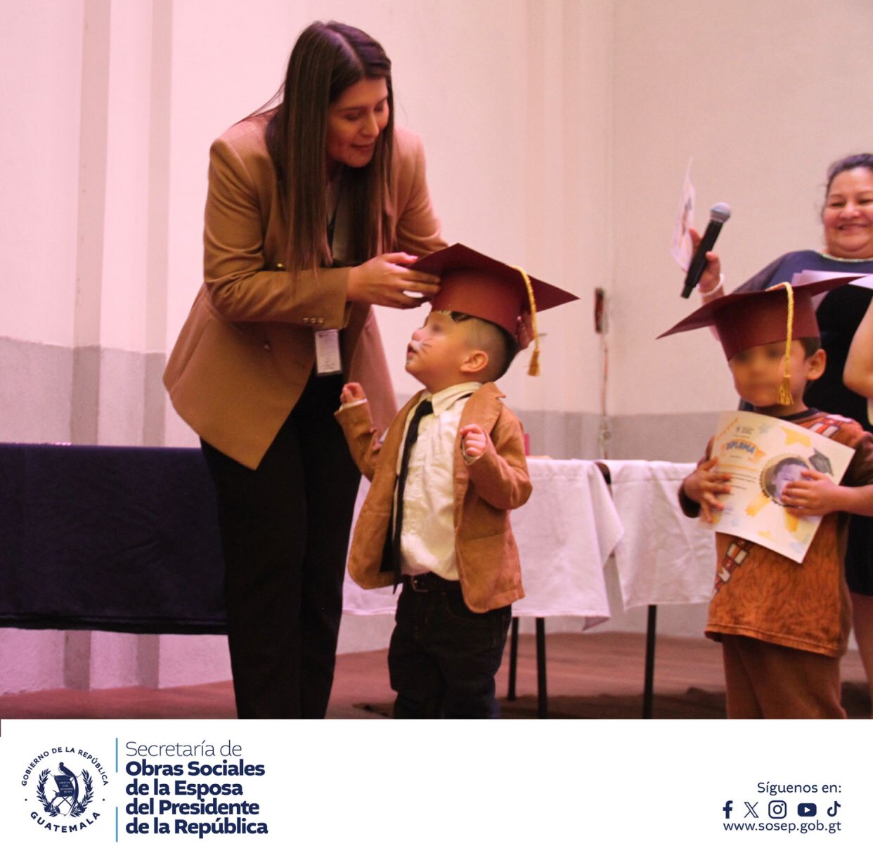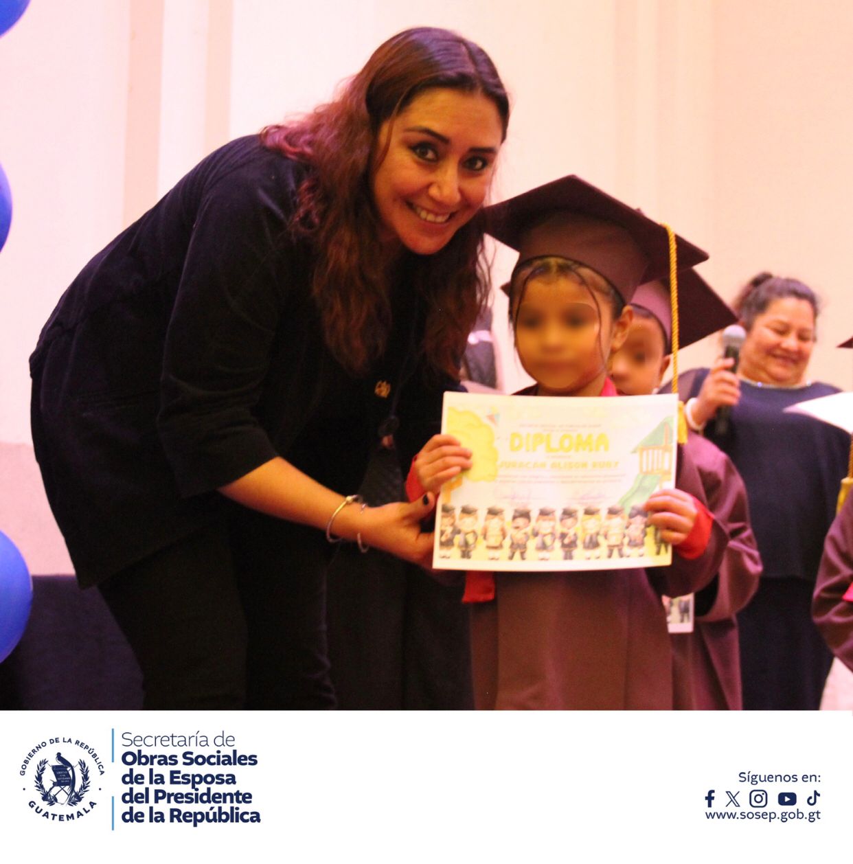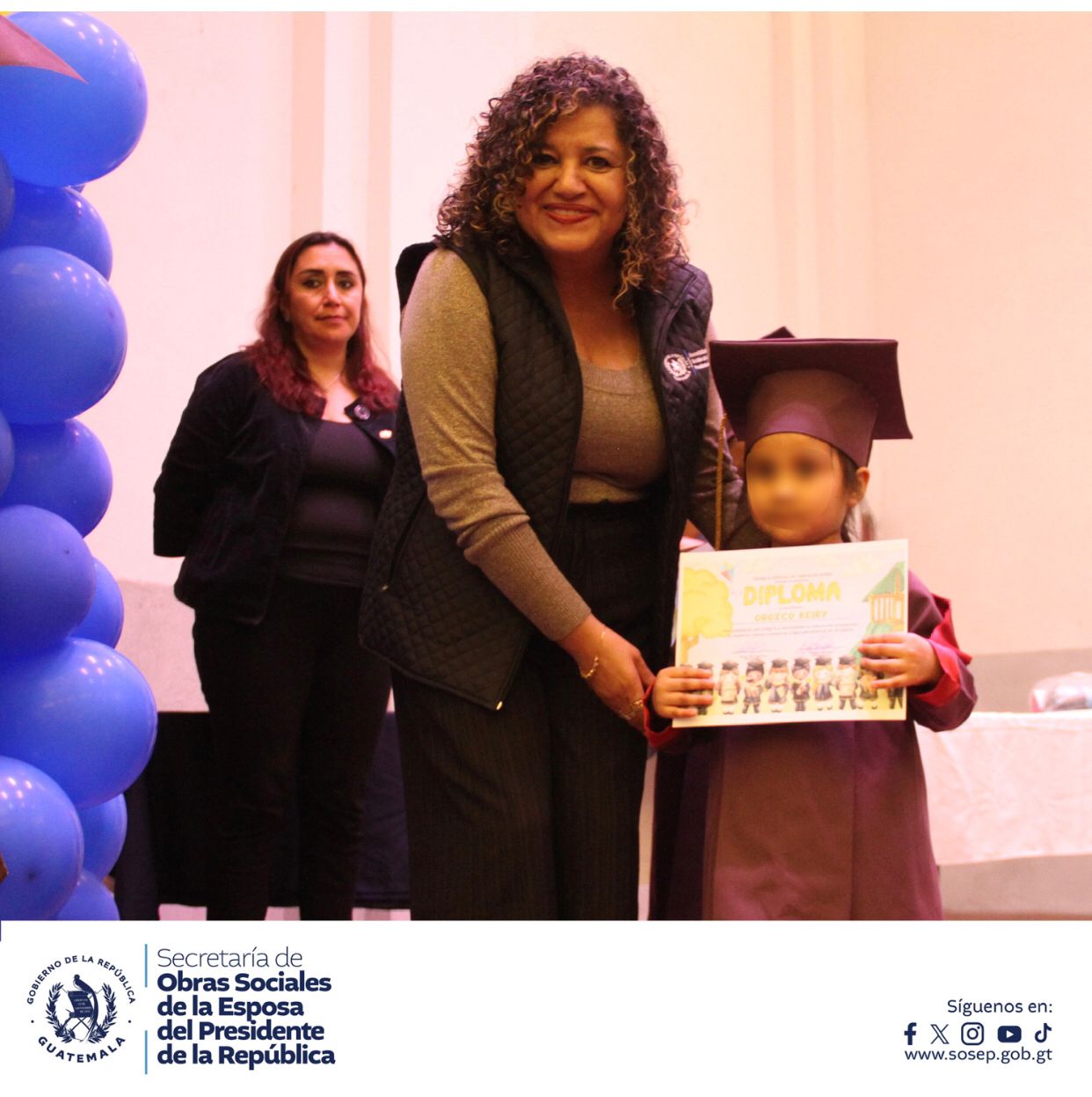 Dicha actividad contó con la presencia de la Dra. Zulma Calderón, Secretaria de Obras Sociales de la SOSEP, quien estuvo acompañada por la Subsecretaria de Promoción Social, Lcda. Natalee Contreras, y la Directora del Programa Hogares Comunitarios, Lcda. Cecilia Díaz. Juntas, compartieron este evento, ofreciendo su apoyo y transmitiendo su alegría a las familias presentes, quienes vivieron con mucho amor y orgullo este momento tan significativo.