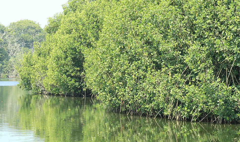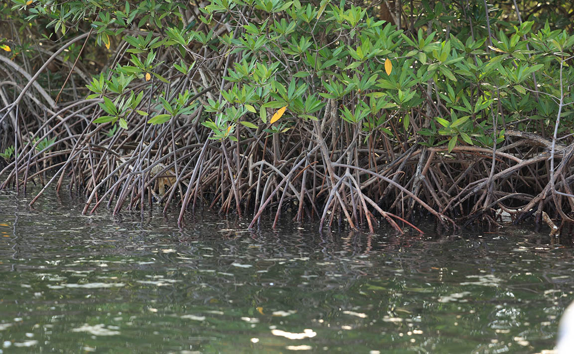 Este es un ecosistema adaptado para sobrevivir en condiciones salinas. Por ejemplo, algunas especies eliminan el exceso de sal a través de sus hojas, sus raíces aéreas les permiten captar oxígeno en suelos anegados y pobres en oxígeno, crecen hacia arriba para captar oxígeno como también dan soporte al árbol y lo anclan en el suelo inestable.