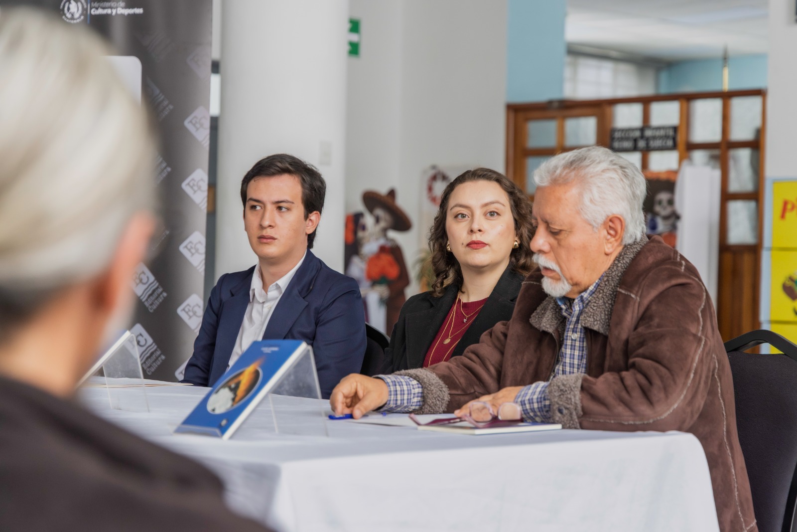 En la mesa de presentación del libro se encontraba Daniel Calderón Herrera, sobrino nieto del escritor, quien recibió oficialmente el libro en nombre de la familia Herrera y agradeció a la EC por editar “Cenizas”, además de compartir sus impresiones.
