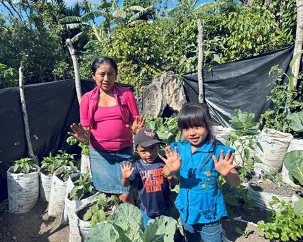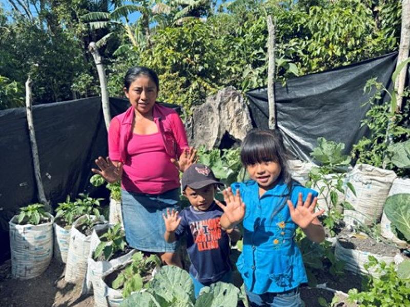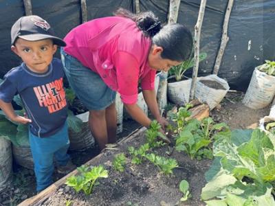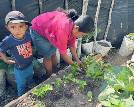 A través de la iniciativa Mano a Mano, una madre en la comunidad La Palmilla no solo recibió un piso digno y saneamiento, sino que utilizó los recursos para crear su propio huerto familiar.