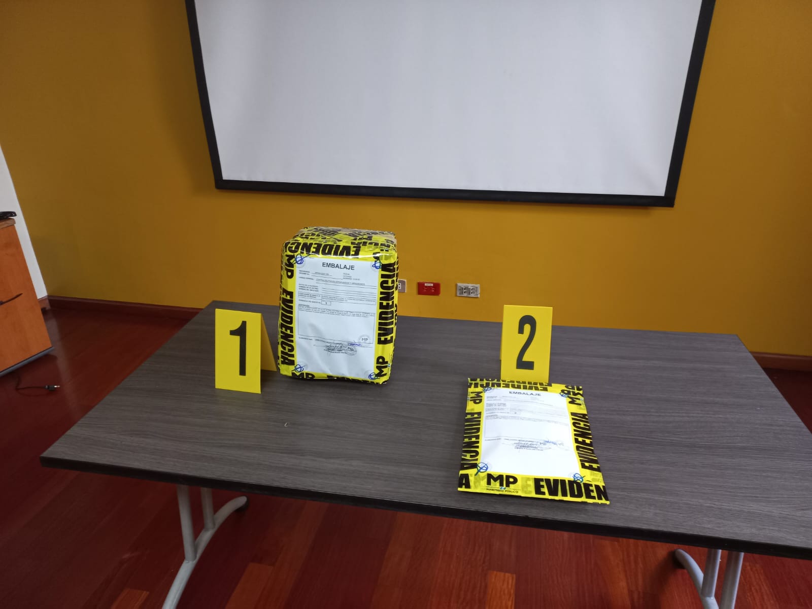 Los efectivos policiales realizaron las coordinaciones competentes con fiscales del Ministerio Público (MP), para realizar la prueba de campo a los 4 envoltorios de color café localizados dentro de la caja, dando como resultado presuntivo positivo para la droga denominada cocaína.