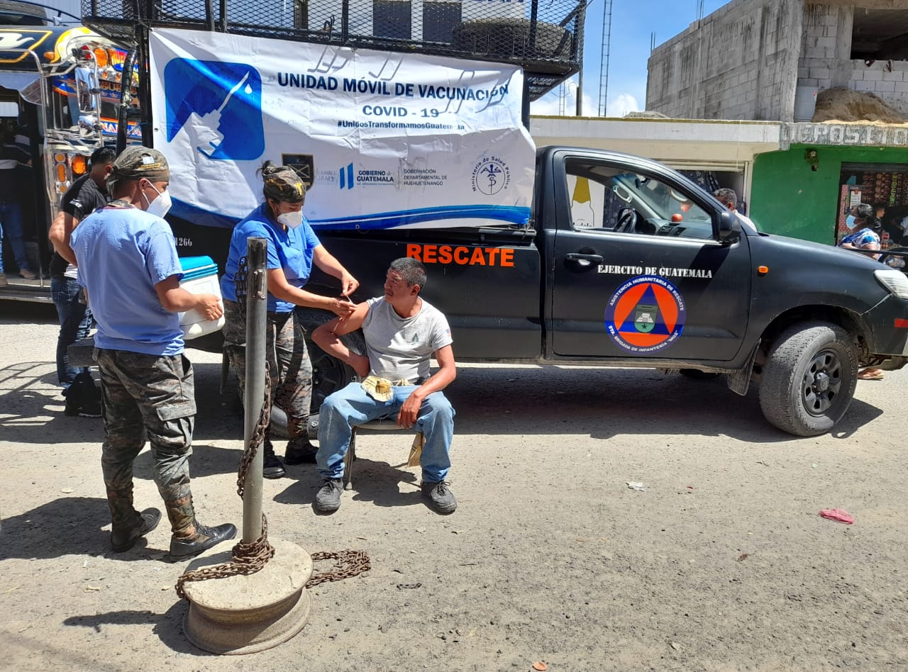 El Ejército de Guatemala, a través de la Quinta Brigada de Infantería "Mariscal Gregorio Solares", desplegó desde el pasado 31 de julio una unidad móvil de vacunación contra el COVID-19, esta unidad móvil se desplaza a los lugares más remotos de difícil acceso en este departamento, para vacunar a la población.