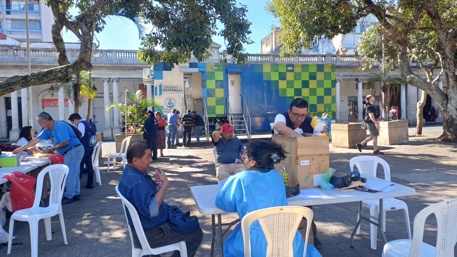 Unidad móvil en la Plaza Central, zona 1, atiende a usuarios con servicio de hisopados