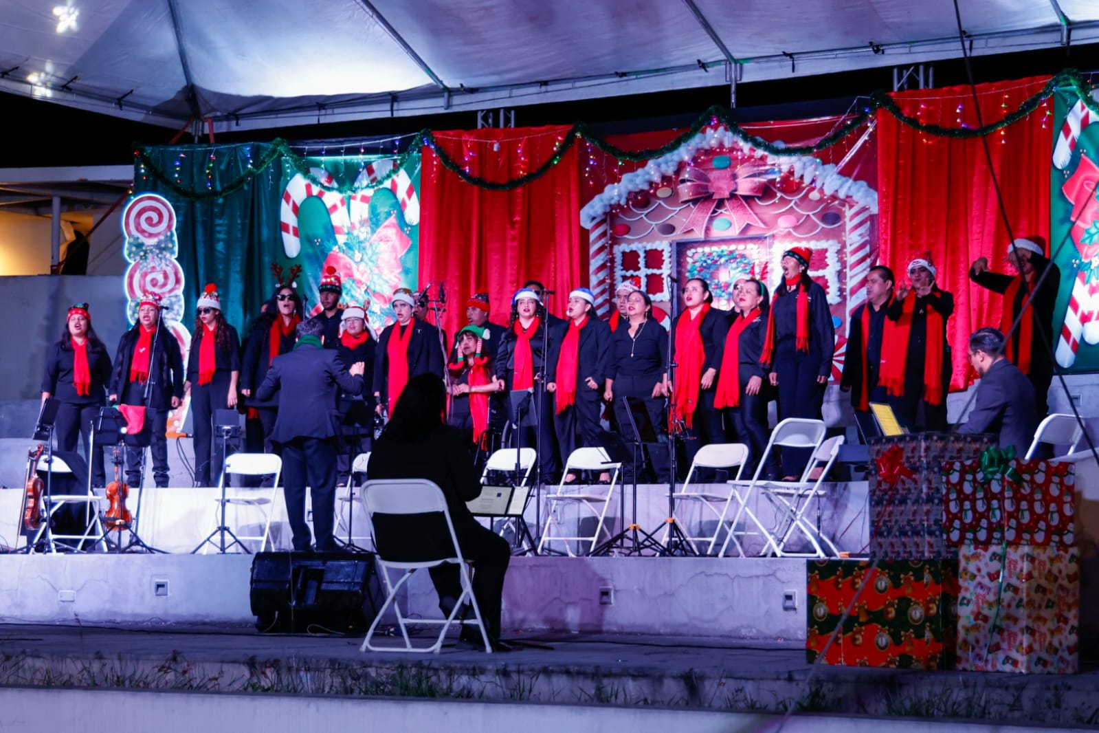La velada presentó por primera vez el ensamble inédito de tres agrupaciones artísticas de la Dirección de Fomento de las Artes: el Cuarteto Primavera, el Quinteto Xocomil y el Coro de Personas con Discapacidad “César Augusto Hernández”.