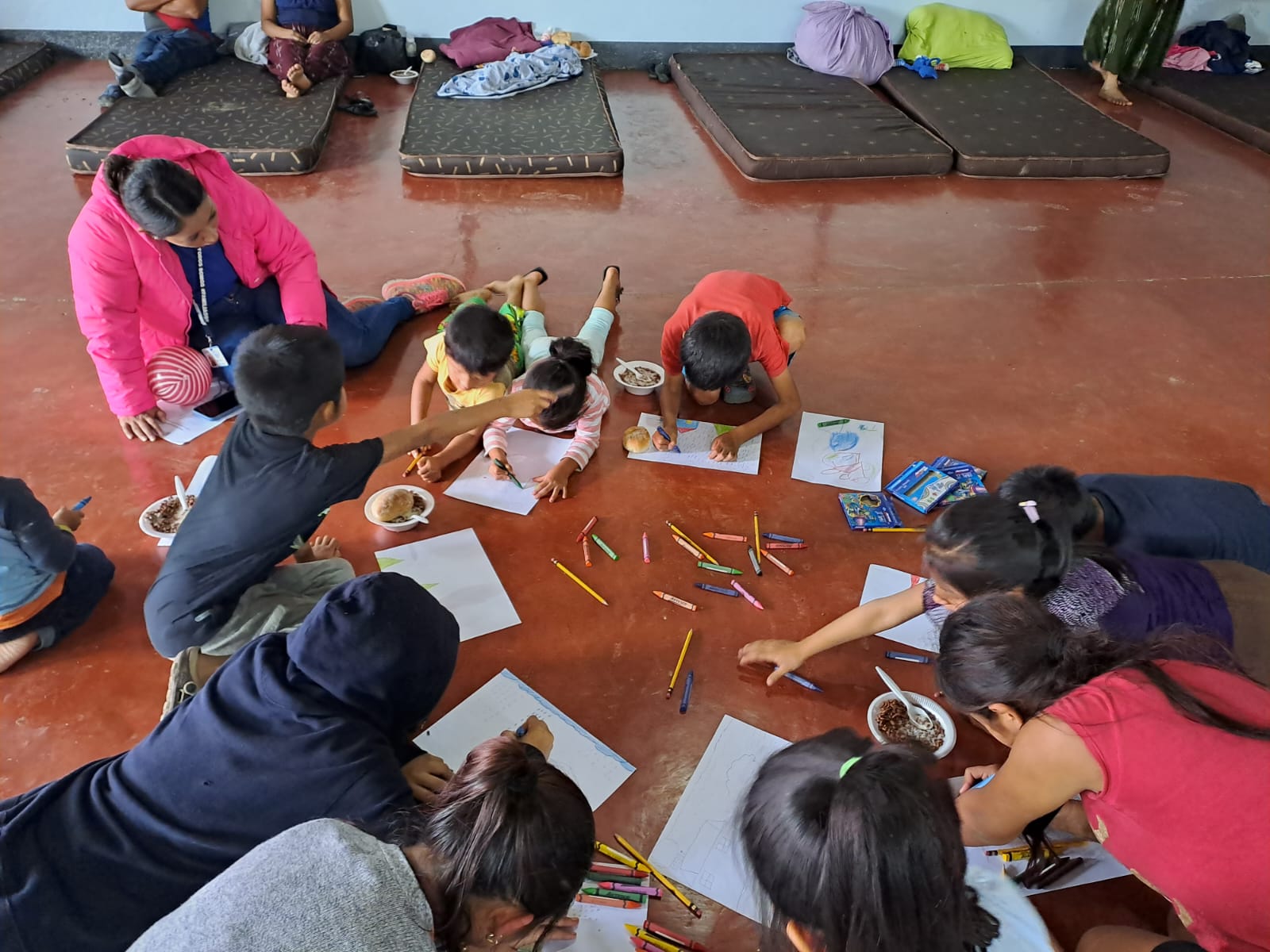 Mientras que en el albergue instalado en el Instituto Nacional de Educación Básica en la aldea Entre Ríos, Puerto Barrios, se repartieron botellas de agua purificada para los damnificados y en articulación con la Sub-Dirección General de Prevención del Delito (SGPD), de la Policía Nacional Civil (PNC), se efectuaron actividades lúdicas y se Conmemoró el Día Internacional de la Niña.