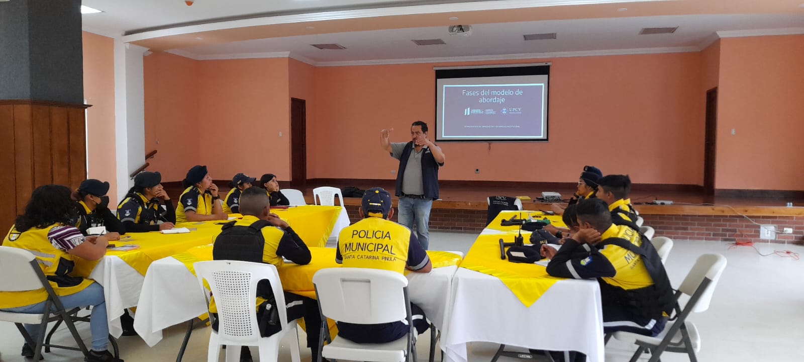 El personal de la UPCV, impartió la semana pasada, la capacitación sobre el tema Modelo de Abordaje, dirigido a miembros de la Policía Municipal de Tránsito (PMT) de la comuna de Santa Catarina Pinula, con la participación de 14 agentes.