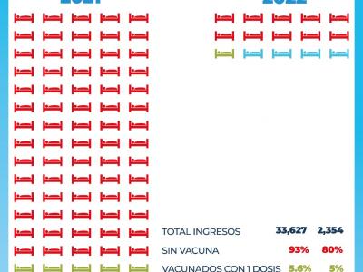 Durante el 2021, un total de 33 627 pacientes diagnosticados con COVID-19 ingresaron a los hospitales públicos, de esta cifra, el 93% refirió que no se habían vacunado contra este virus. El 5.6% habían sido inmunizados con una dosis y el 1.9% con esquema completo.