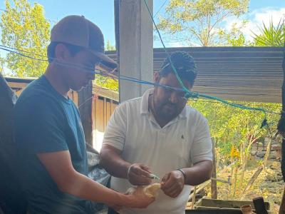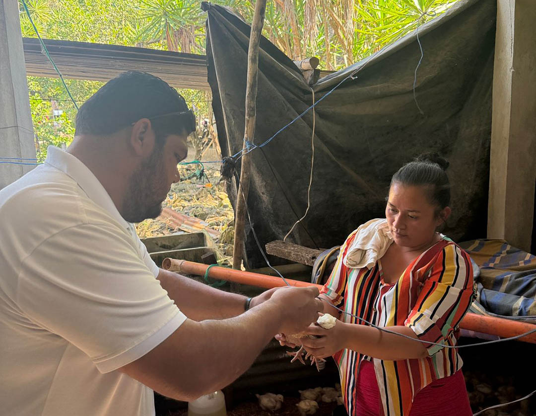 Durante la visita, se realizó la jornada de vacunación preventiva del lote de pollos, con el objetivo de fortalecer el manejo sanitario y prevenir la aparición de enfermedades comunes en la producción avícola.