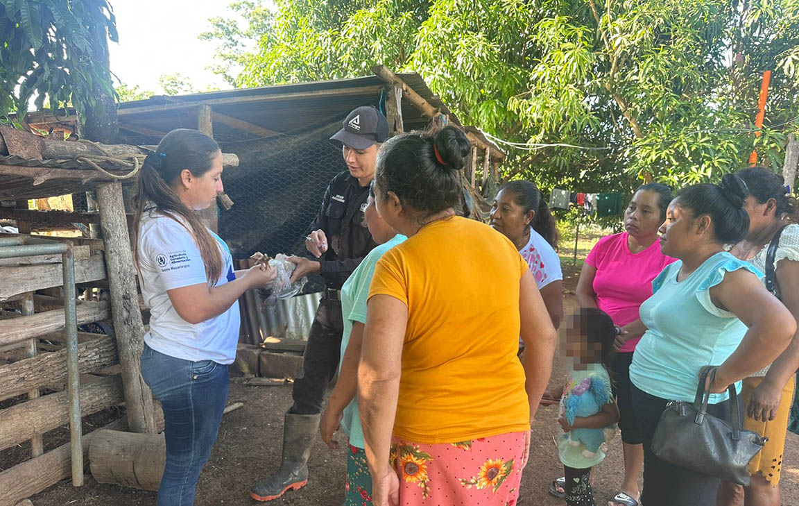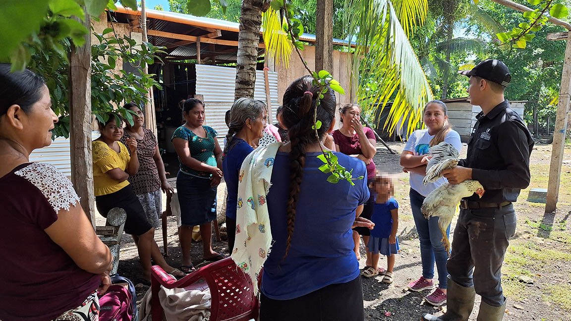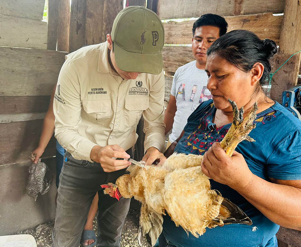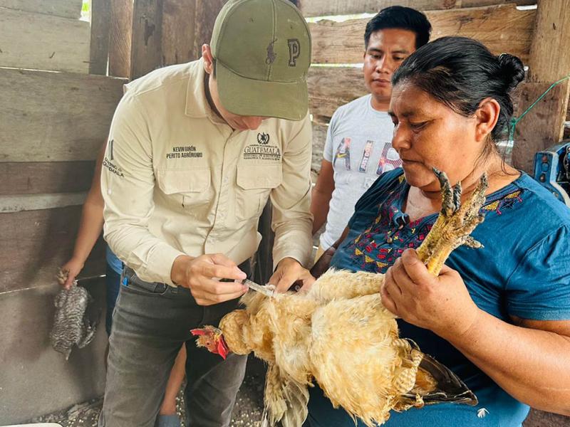 Pequeños productores de aves de traspatio de las comunidades La Palma, Armenia y Palestina, en el municipio de Las Cruces, Petén, participaron en una jornada de vacunación preventiva brindada por personal del Ministerio de Agricultura, Ganadería y Alimentación (MAGA).