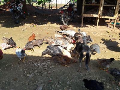 Vacunan aves de patio en Las Cruces, Petén
