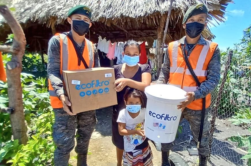 La Cuarta Brigada de Infantería "General Justo Rufino Barrios" efectuó este lunes 27 de septiembre, donación de Eco filtros a múltiples familias de escasos recursos que habitan en el barrio Guayacán, del municipio de Champerico, Retalhuleu.