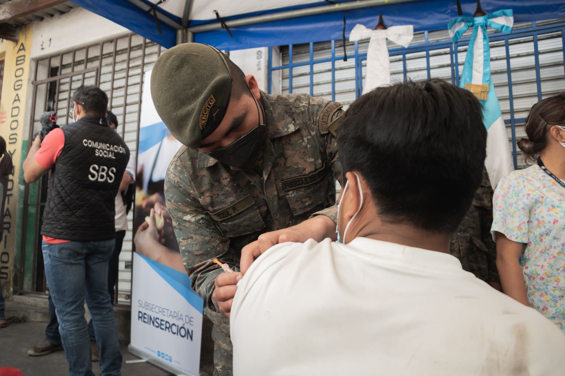 En esta ocasión el personal de la #FamiliaSBS se movilizó al mercado la Providencia en la zona 1 de Mixco, en donde en coordinación con las autoridades del mercado, el Ministerio de Salud, El Ministerio de la Defensa y la municipalidad del lugar se estableció un centro de vacunación.
