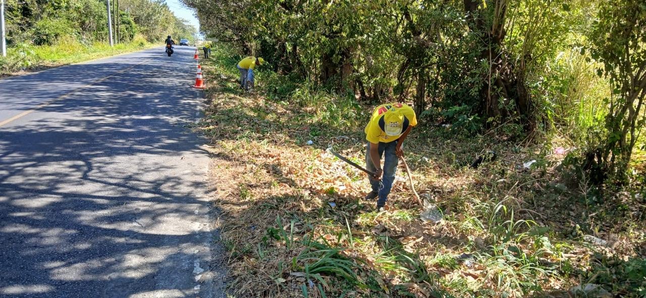 A lo largo de la carretera que parte desde la CA-1 oriente, se están realizando labores de chapeo y limpieza en los hombros, mejorando la visibilidad, la seguridad y el entorno.