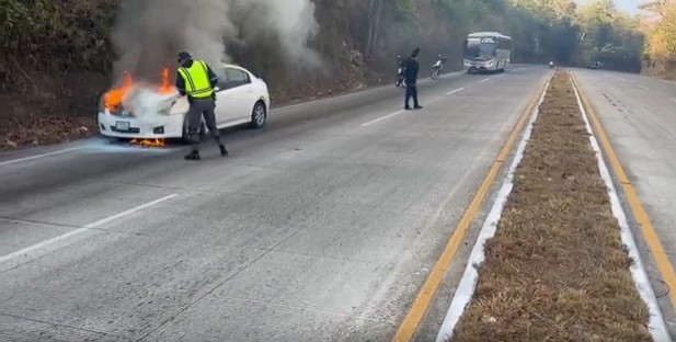 Brigadas de la Dirección General de Protección y Seguridad Vial (Provial) brindaron asistencia a conductor cuyo vehículo se incendió en el km 50.3 de la ruta a El Salvador [CA-1 Oriente] en jurisdicción de Barberena, Santa Rosa. El hecho dejó obstruido el carril derecho hacia el oriente.