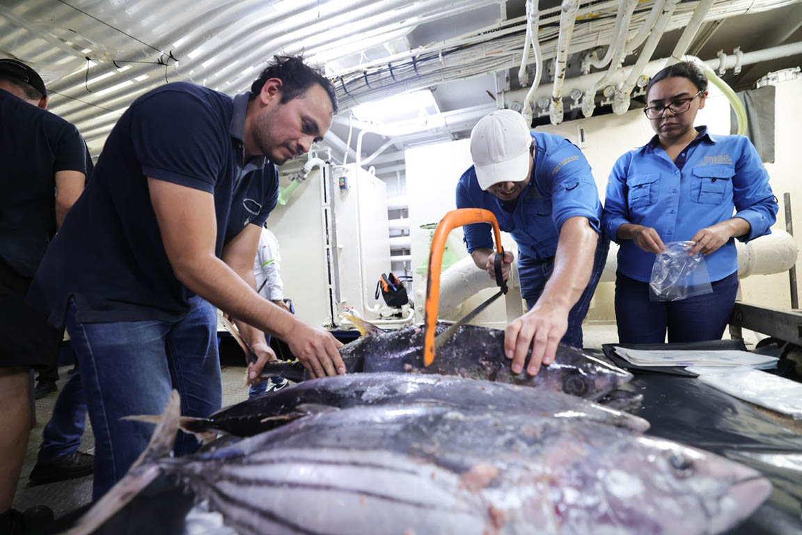 Durante la inspección, el equipo técnico efectuó verificación documental, que incluye la revisión de los controles aplicados durante la captura y las temperaturas de almacenamiento del atún. Posteriormente, se realizó la toma de muestras directas del producto, las cuales serán enviadas a laboratorio para confirmar que estén libres de contaminantes.
