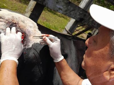 Personal de la Dirección de Desarrollo Agropecuario (DAGRO), del Viceministerio de Asuntos de Petén (VIPETÉN), atendió un aviso y visitó las fincas La Escondida y Pecosbil Purusila, ubicadas en el municipio de Santa Ana, Petén. En lugar efectuaron toma de muestras de larvas, así como la desinfección y curación de las áreas afectadas en los animales.