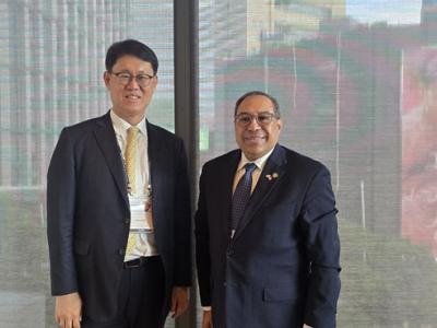 Adicionalmente, sostuvo un encuentro con el Vicepresidente de la Cámara de Comercio e Industria de Corea del Sur, Chul Min Yoon, con el objetivo de impulsar el comercio bilateral, la atracción de inversiones y nuevas oportunidades de cooperación empresarial entre ambos países.