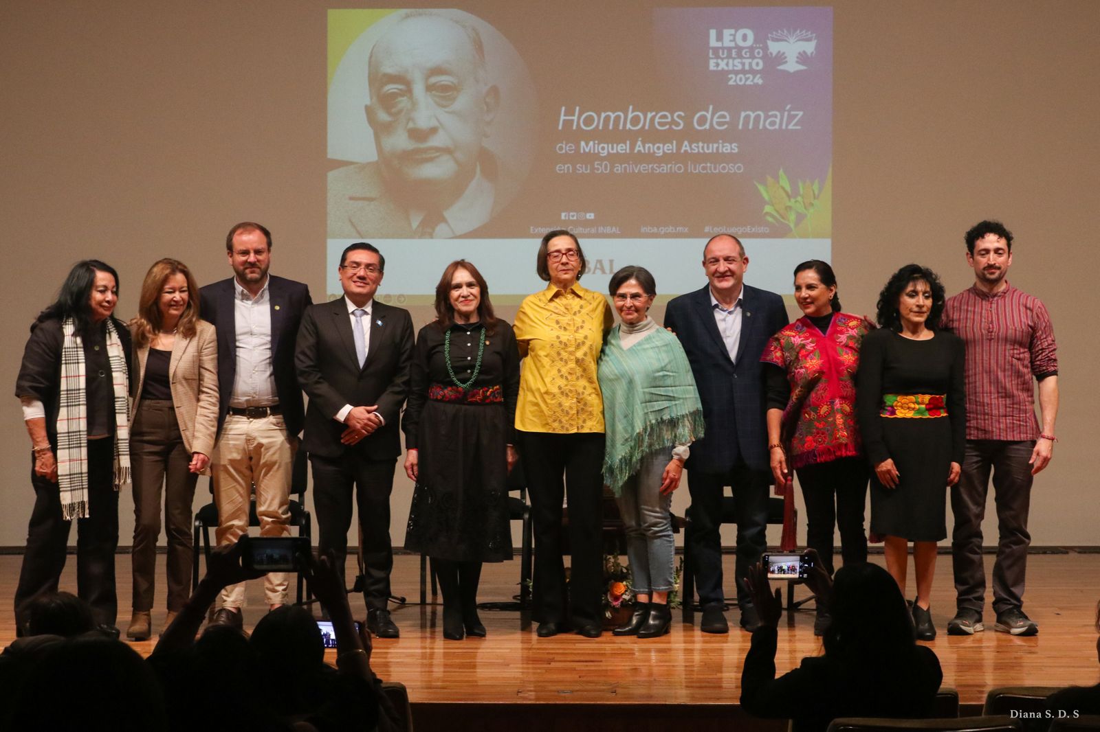 En la Sala Manuel M. Ponce del Palacio de Bellas Artes se llevó a cabo la lectura en voz alta de "Hombres de maíz", con la participación de los actores de la Compañía Nacional de Teatro de México Zaide Silvia Gutiérrez y Roldán Ramírez, y de la intérprete de lengua de señas Centeotl Mendoza.