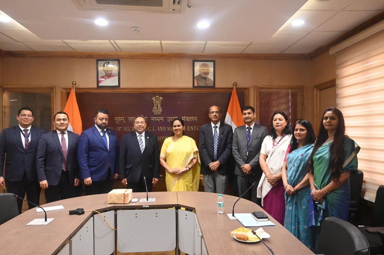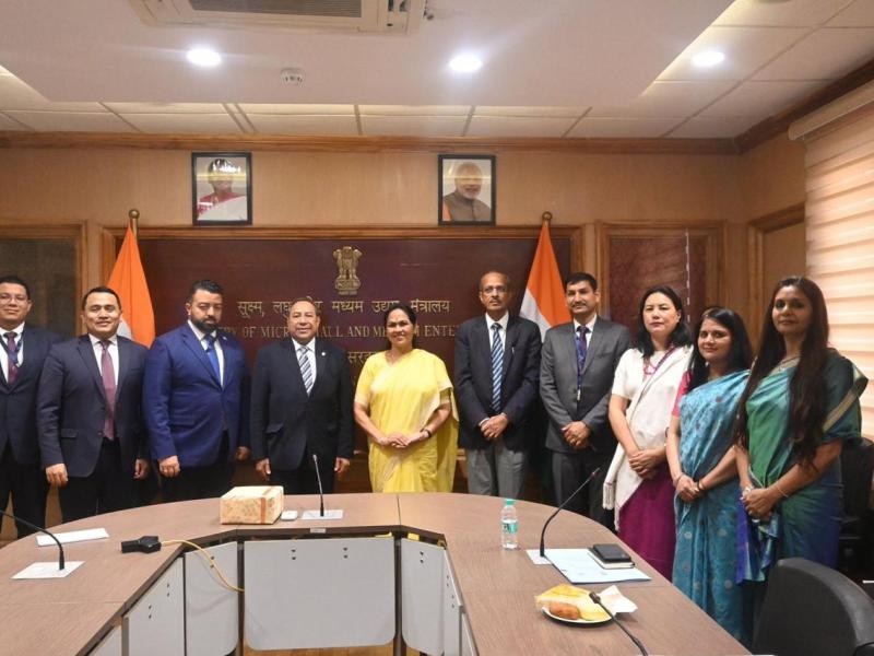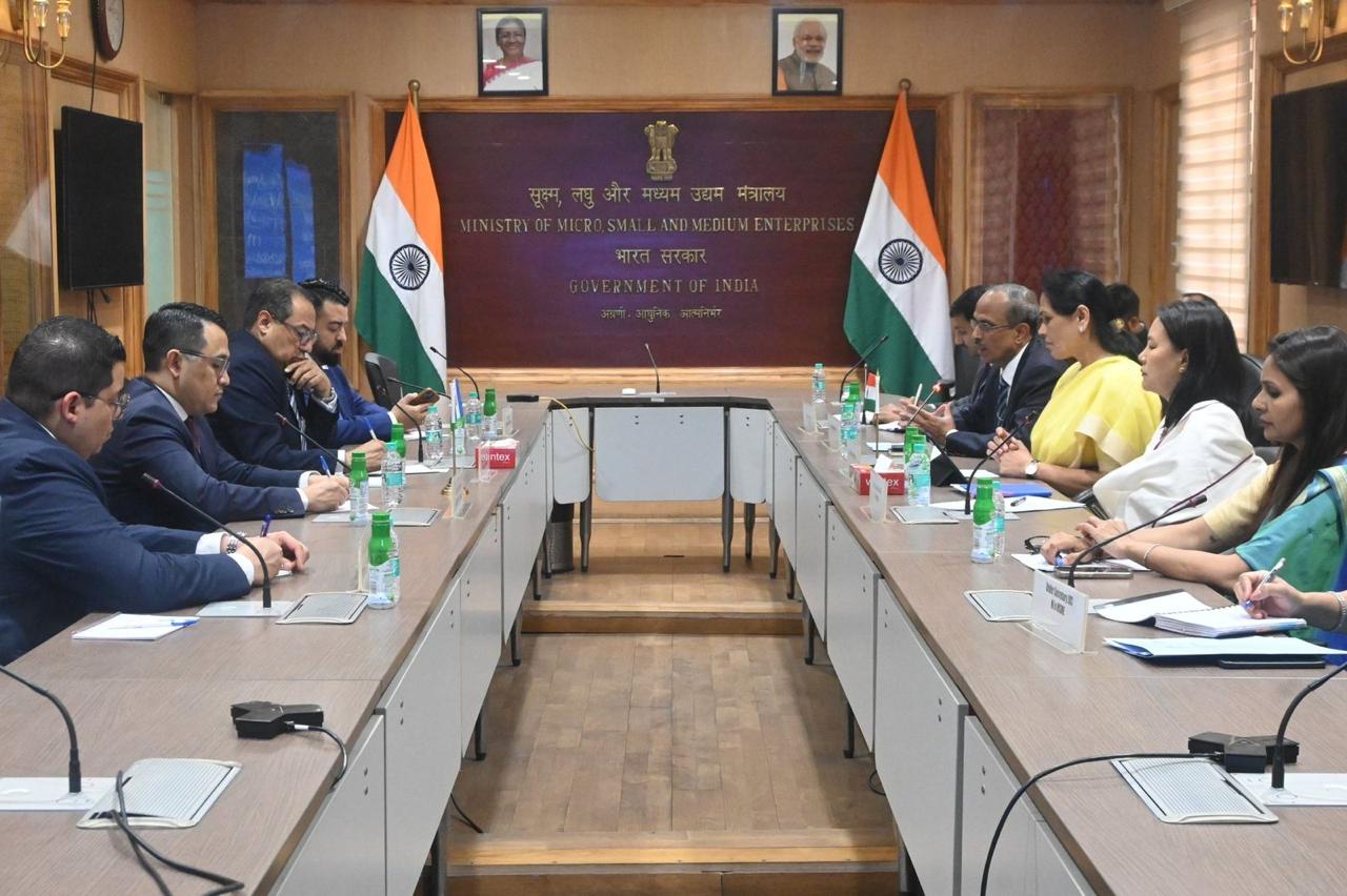 Nueva Delhi, India, 27 de marzo de 2025. El Viceministro de Relaciones Exteriores de Guatemala Julio Orozco, en el marco del Cónclave India-Latinoamérica y Caribe, sostuvo una reunión bilateral con la Ministra de Estado de India, Shobha Karandlaje, con quien discutió estrategias para fortalecer la colaboración entre las micro, pequeñas y medianas empresas (mipymes).