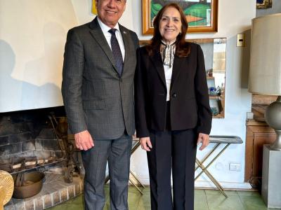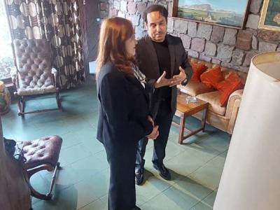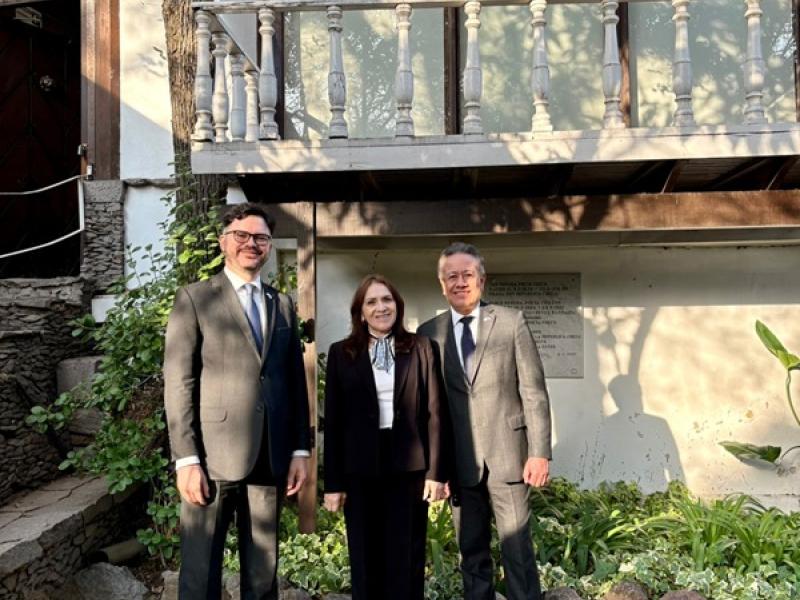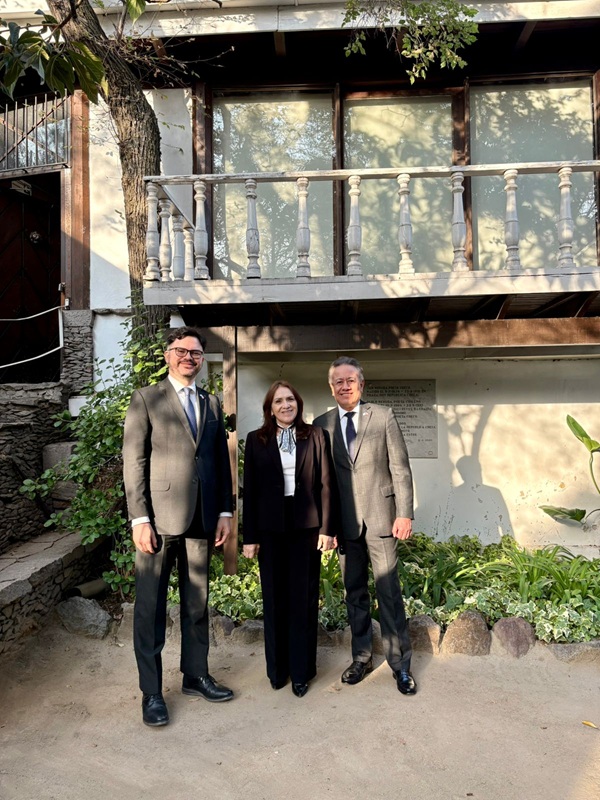Santiago de Chile, 14 de abril de 2026. La vicecanciller María Luisa Ramírez visitó la Fundación Pablo Neruda, donde sostuvo una reunión con el director ejecutivo, Fernando Sáez, para dar seguimiento a la cooperación bilateral en el ámbito literario.