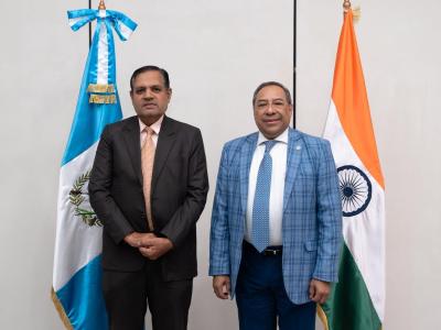 Guatemala, 25 de marzo de 2026. El vicecanciller Julio Eduardo Orozco se reunió con el embajador de India en Guatemala, Raj Kumar Singh, y con el presidente de la Cámara de Comercio Bilateral Guatemala-India (IndiaCam), para abordar iniciativas de promoción comercial de Guatemala en ese país y atracción de inversión.