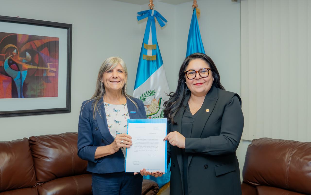 Guatemala, 14 de noviembre de 2025. La Viceministra de Relaciones Exteriores Mónica Bolaños Pérez recibió las credenciales que acreditan a la señora Alejandra Trossero como nueva Representante de UNICEF en Guatemala.