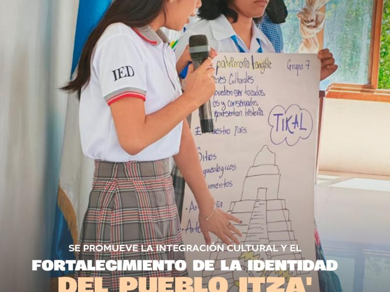 En San Andrés, el Viceministerio de Interculturalidad impulsa acciones con estudiantes para promover la integración cultural y fortalecer la identidad del pueblo Itza, con la participación de 80 jóvenes.