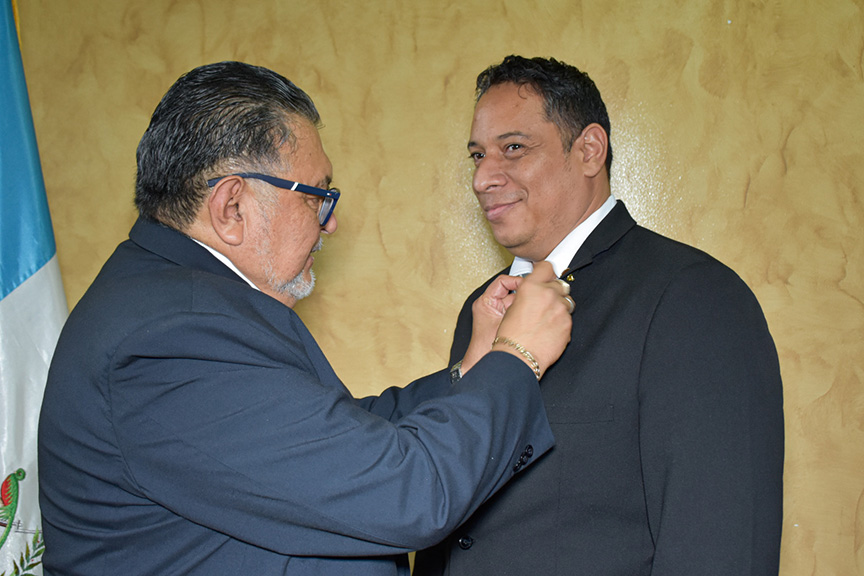 La juramentación estuvo a cargo del ministro del MAGA, Mynor Estrada, quien impuso al viceministro Salazar el pin conmemorativo que significa, a la vez, el símbolo de su compromiso con la institución.
