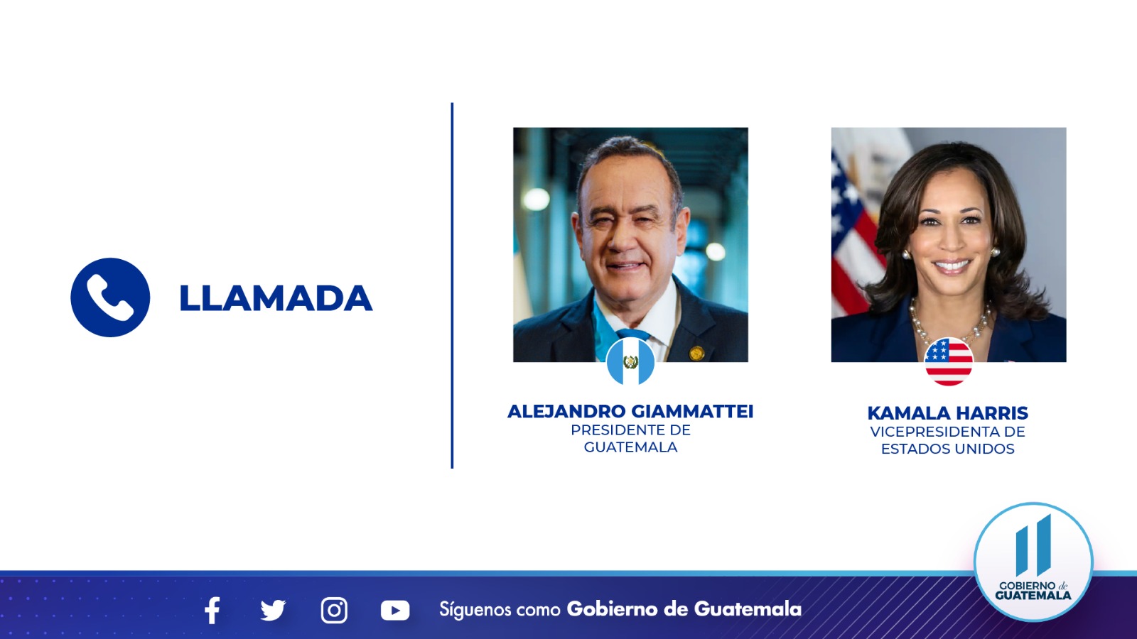 La Vicepresidenta de Estados Unidos, Kamala Harris, agradeció en una nueva conversación telefónica la amistad y colaboración del Presidente de Guatemala, Alejandro Giammattei, en el fortalecimiento de la relación bilateral entre ambos países.
