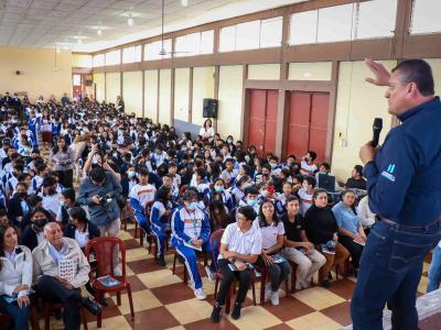 El vicepresidente de la República y presidente del Consejo Nacional de Ciencia y Tecnología (Concyt), Guillermo Castillo Reyes, compartió con más de 500 estudiantes del Instituto Normal Mixto Alejandro Córdova de Huehuetenango, anécdotas de su juventud cuando estudiaba en este mismo establecimiento la carrera de magisterio.