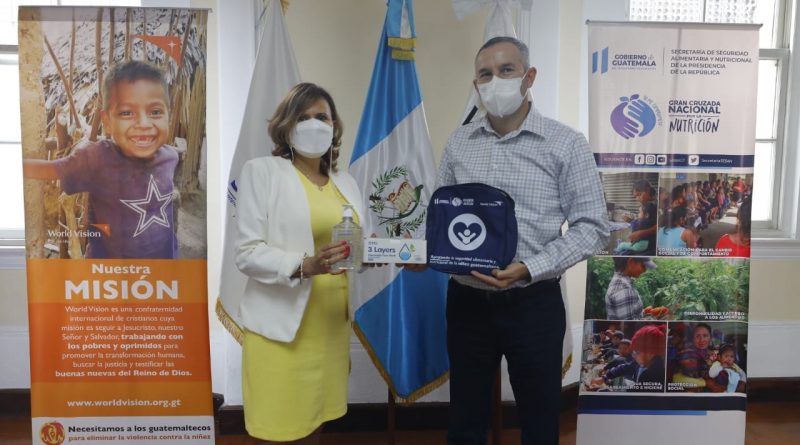 Para resguardar la salud del personal técnico y equipo de campo que tiene a su cargo la coordinación y articulación de proyectos vinculados con la seguridad alimentaria y nutricional a nivel territorial, la subsecretaria administrativa de la Secretaría de Seguridad Alimentaria y Nutricional (Sesan), Glenda Mérida recibió de la Fundación Visión Mundial Guatemala insumos de bioseguridad a fin de fortalecer las acciones de atención a la niñez en vulnerabilidad en el marco de la Gran Cruzada Nacional por la Nutrición.