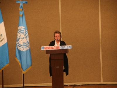 La Secretaria, dentro de su intervención comentó: "Guatemala ha dado pasos sustantivos en la creación de una institucionalidad para trabajar y promover el desarrollo integral de las mujeres, por la prevención de cualquier forma de violencia contra las mujeres indígenas, además de generar un marco jurídico y de política pública que oriente el accionar para trabajar por estos objetivos. "
