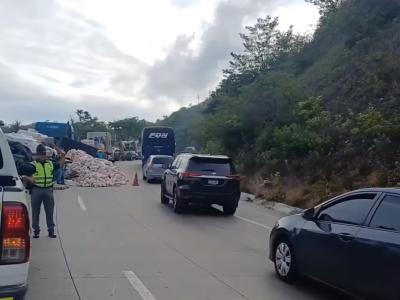 Este día, su compromiso volvió a hacerse presente tras la caída de carga en el kilómetro 41 de la ruta al Atlántico [CA-9 Norte], jurisdicción de San Antonio La Paz, El Progreso. El incidente provocó la obstrucción del carril izquierdo con dirección al norte, generando complicaciones en la circulación vehicular.