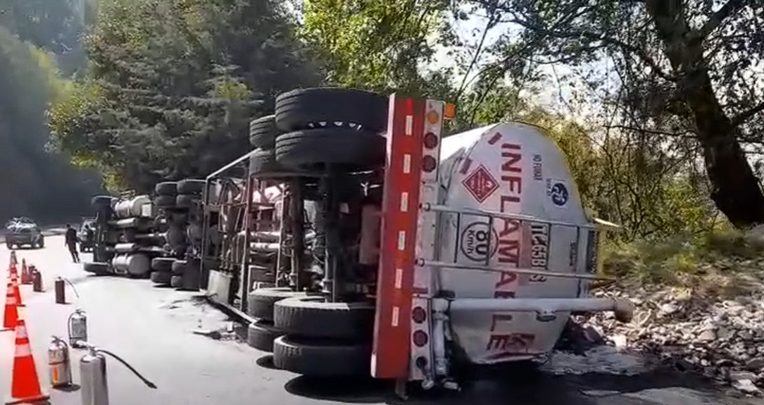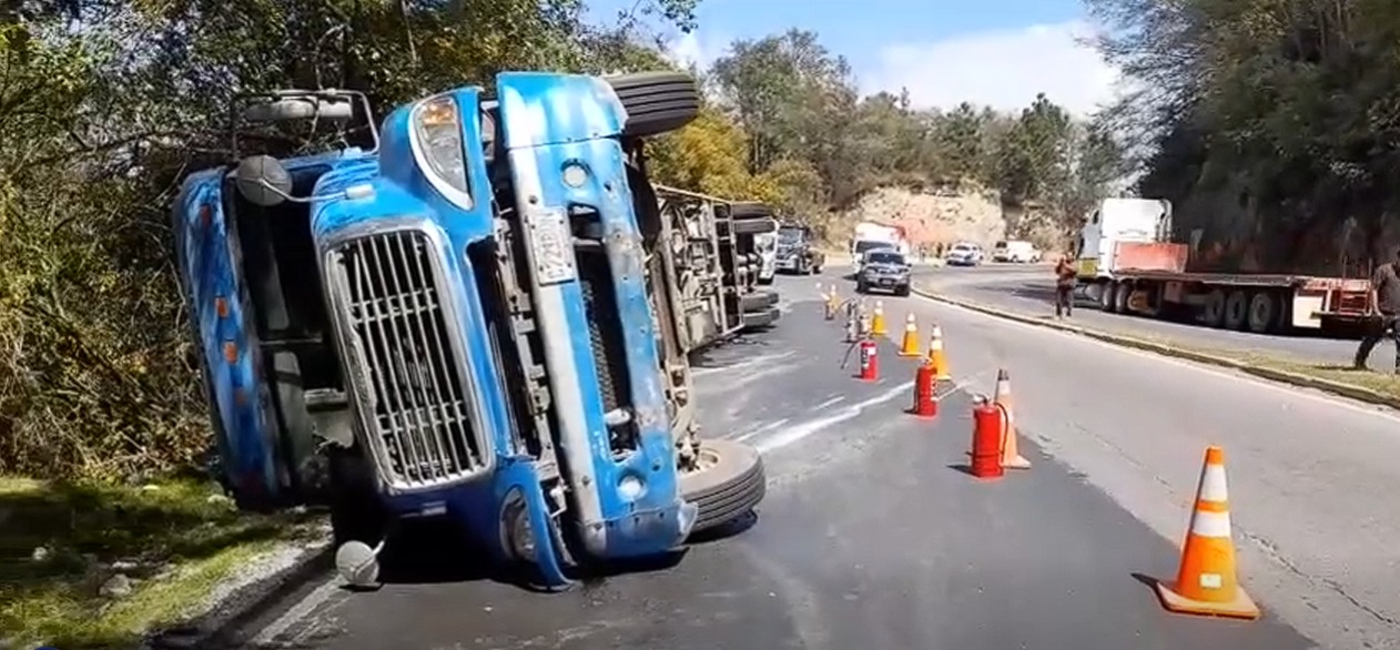 Brigadas de la Dirección General de Protección y Seguridad Vial (Provial) atendieron un hecho de tránsito en el km 172 de ruta Interamericana [CA-1 Occidente] en jurisdicción de Totonicapán donde volcó un cisterna, lo que obstruyó el paso vehicular en el carril derecho hacia Occidente.