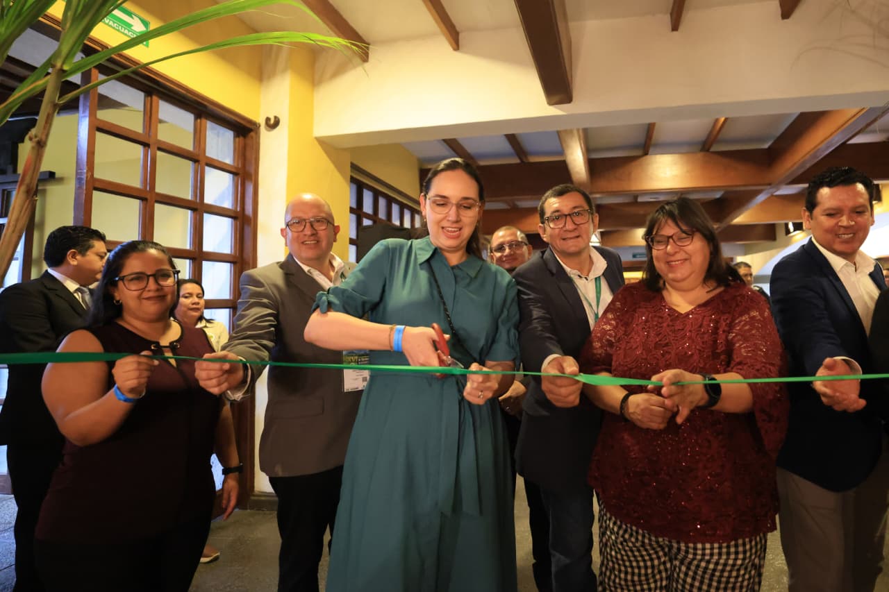 Wendy del Cid, presidenta de ATAGUA, junto a miembros de la junta directiva y la viceministra Motta, inauguraron la exposición de estands de diversas instituciones vinculadas al sector, en los que se presentan avances tecnológicos y propuestas de innovación para la industria.