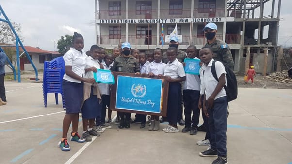 El pasado 24 de octubre, Soldados que forman parte del XXI Contingente de Fuerzas Especiales del Ejército de Guatemala, desplegado en la República Democrática del Congo, conmemoraron el Día de las Naciones Unidas, compartiendo con jóvenes de la escuela Children's Voice, ubicada en la ciudad de Goma, con quienes se organizaron diferentes actividades para socializar e intercambiar lazos de amistad como parte de las acciones de apoyo a la proyección social y operaciones de Asuntos Civiles de la Misión de Estabilización de las ONU en este país.